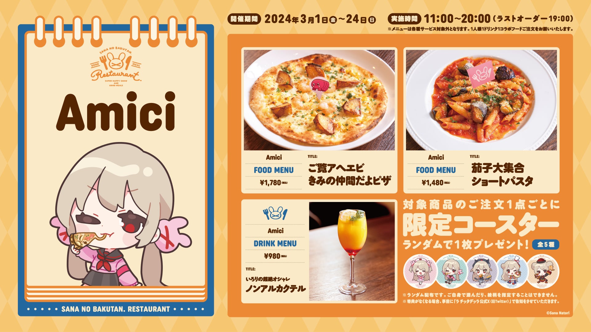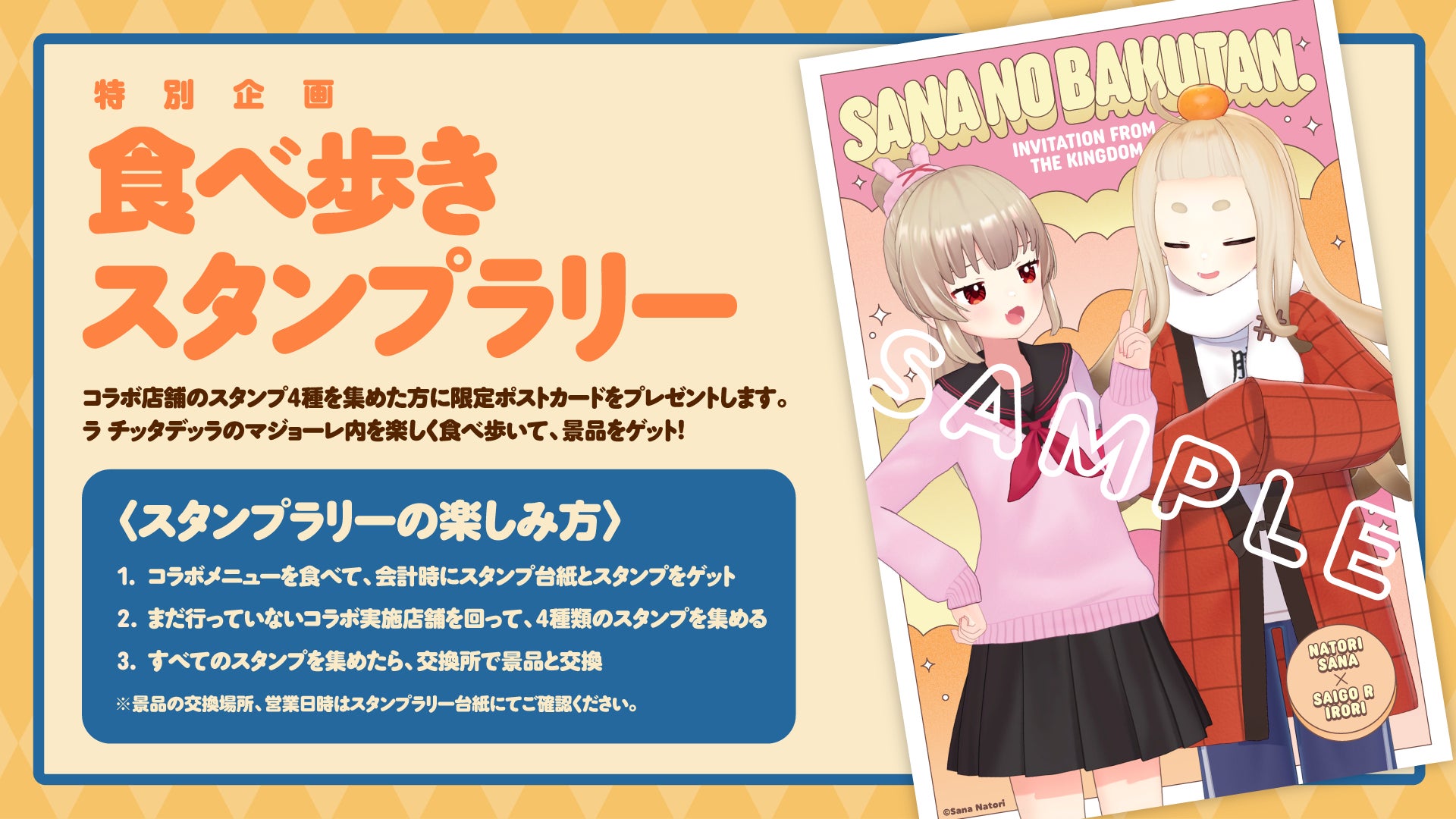 昨年に引き続き、名取さな監修のオリジナルコラボメニューがラ チッタデッラ内の4店舗で登場いたします。限定コースターやスタンプラリーでポストカードがもらえるチャンスもご用意。ここでしか食べられないメニューの数々と共にぜひお楽しみください。