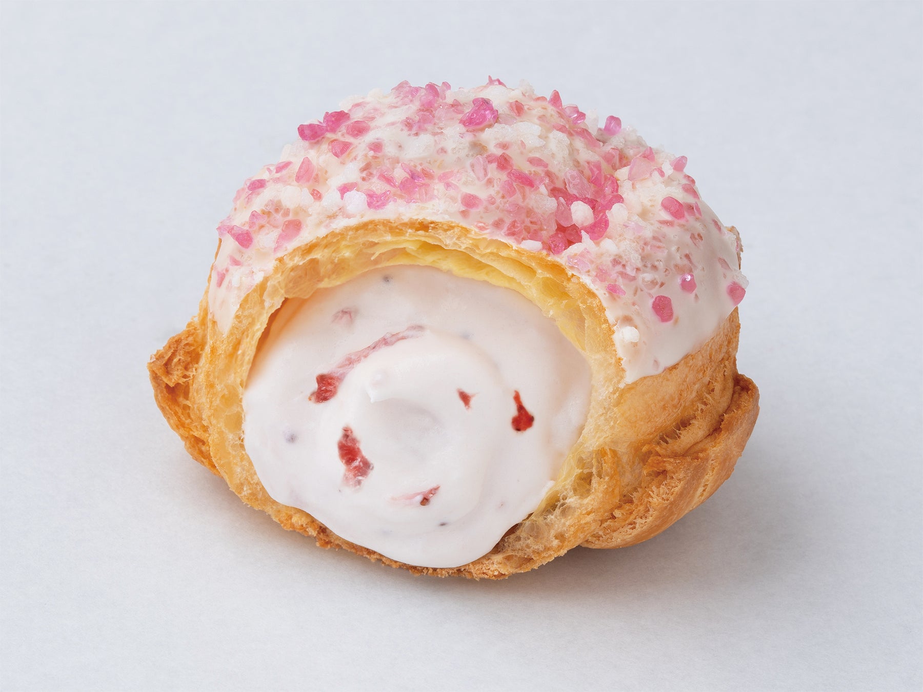 いちごみるくキャンディグリッター®で飾ったシュー生地と、練乳のやさしい味わいのいちごみるくクリーム