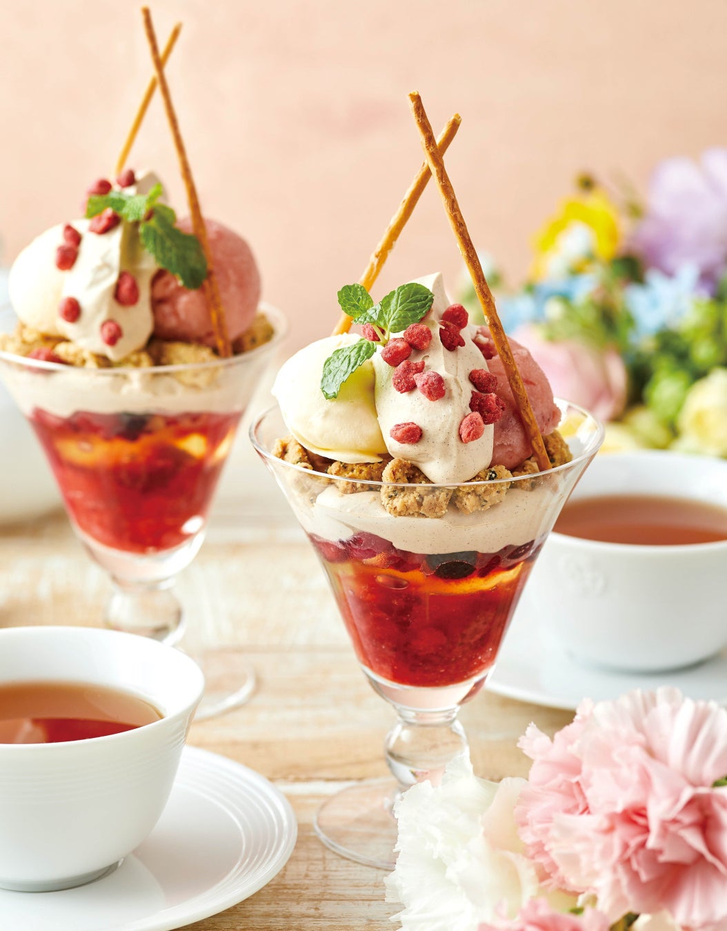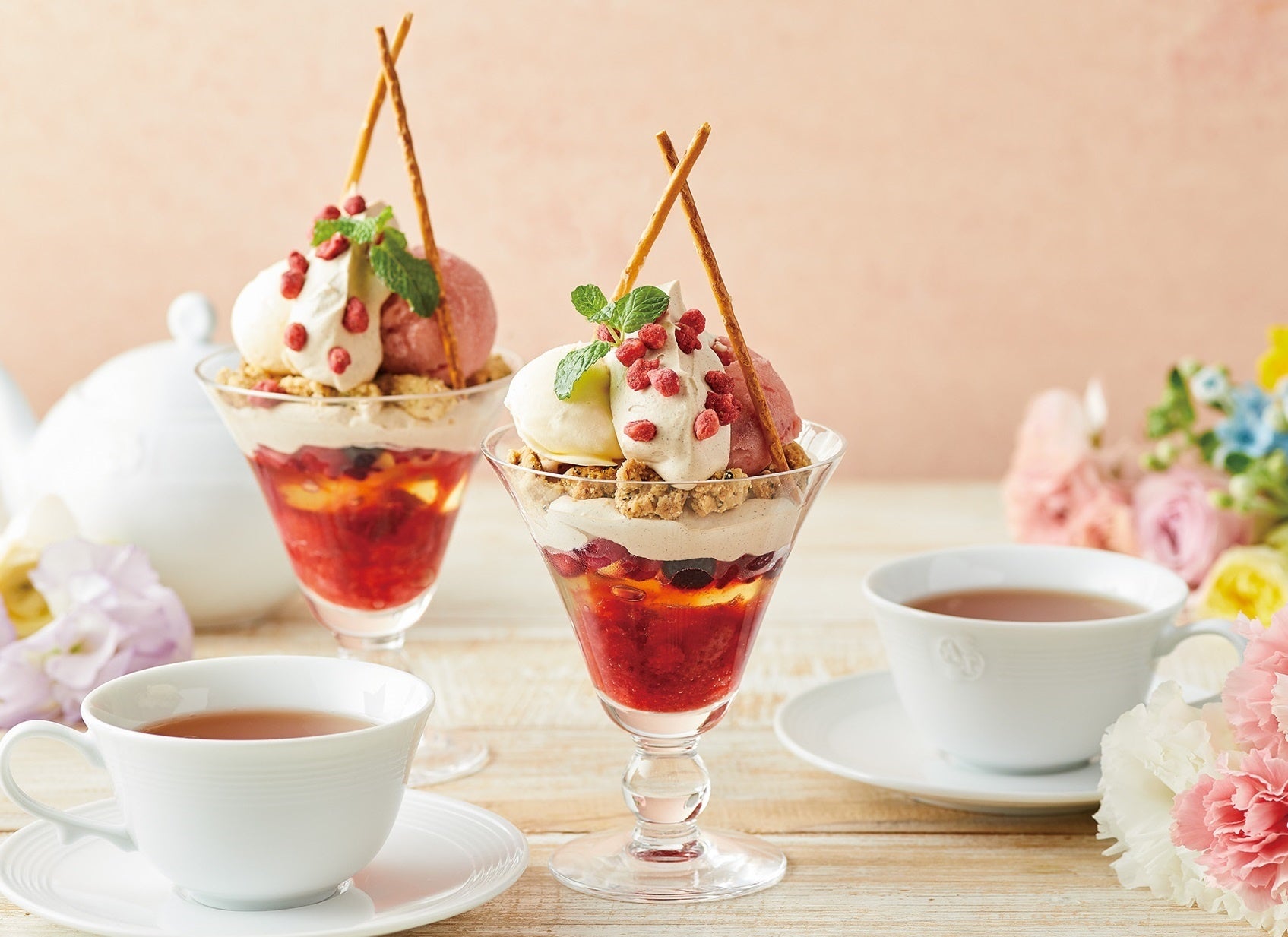 - ティールームでお好みの紅茶と一緒に楽しめる、期間限定パフェ