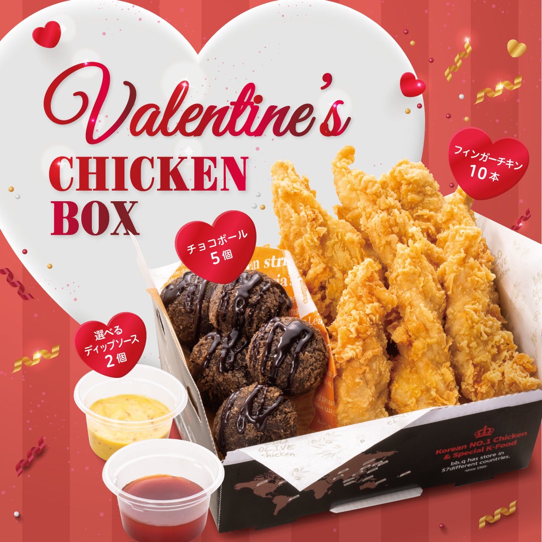 ハッピーバレンタイン♪人気のチキンフィンガーとあま~いチョコボールが一緒になったオトクなバレンタインチキンボックスを期間限定販売|bb.q オリーブチキンカフェ 川崎西口店