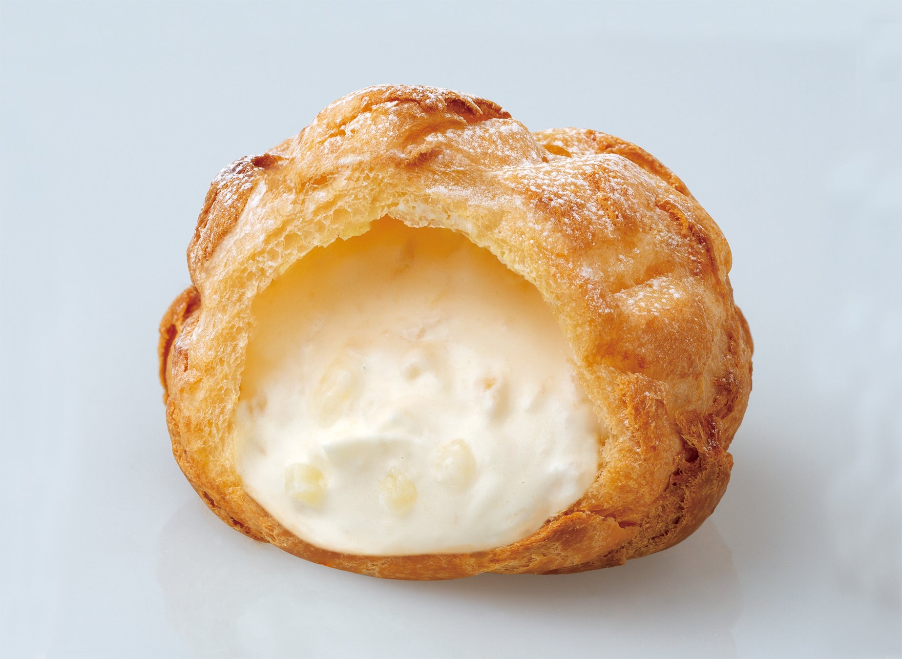 “とろけるももシュー”は、とろける食感の白桃果肉を贅沢に使用したクリームを自慢のパイシュー生地で包み込みました。桃の甘い香りとみずみずしさをご堪能いただける、初夏に似合う爽やかなシュークリームです。