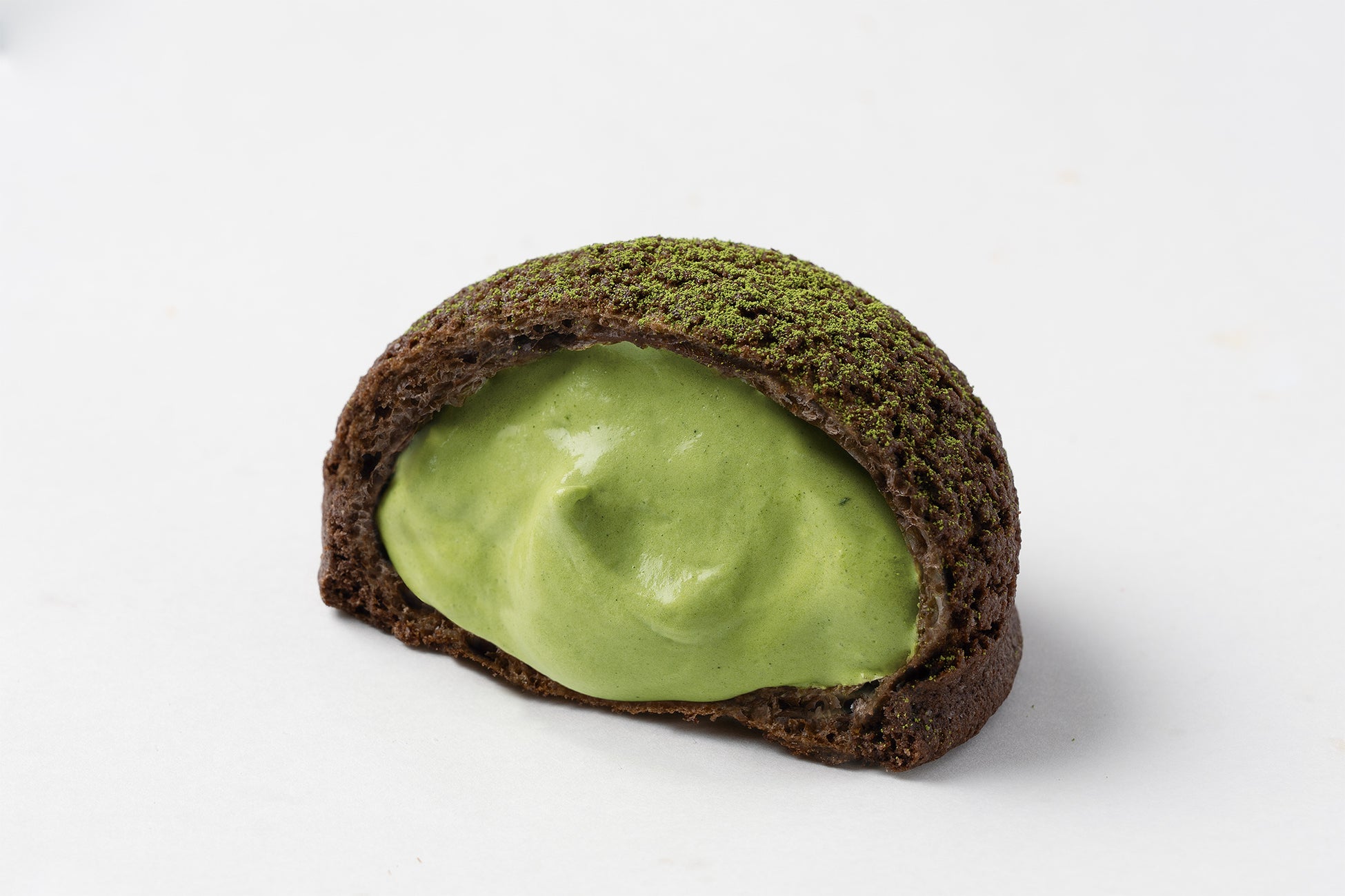 玉露入り抹茶クリームとザクザク食感のクッキーシュー生地。