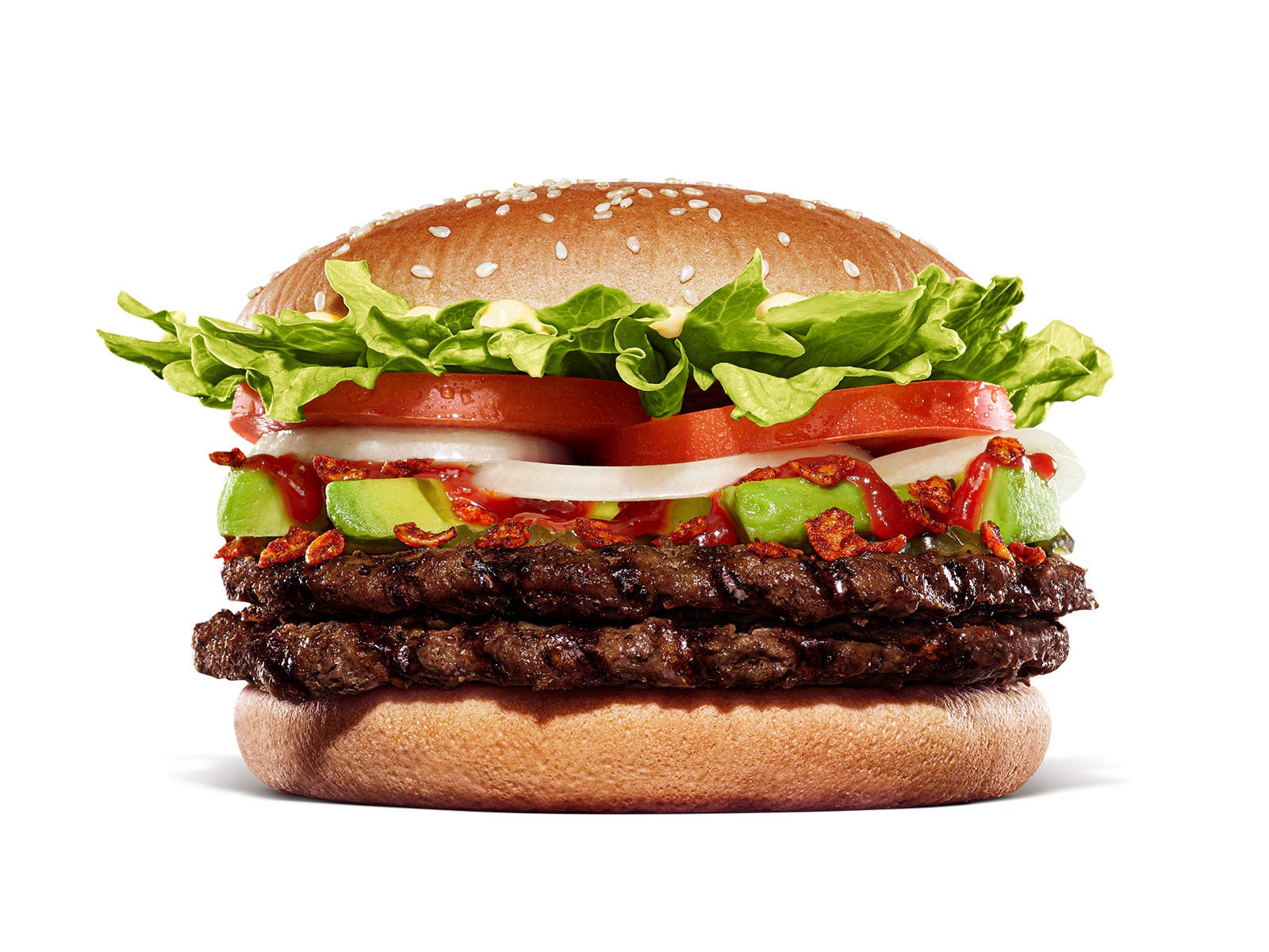 『ダブルメキシカン アボカドワッパー® 』は、直火焼きの100%ビーフパティを2枚重ね、クリーミーでリッチな味わいのアボカド、フレッシュなレタス、トマト、オニオンの豊富な野菜、ピクルスを重ね、11種のスパイスを使用したピリ辛の新メキシカンフレークで仕上げました。ほど良い辛さがボリューム満点の直火焼きビーフ2枚とアボカドに相性抜群のワッパー® です。