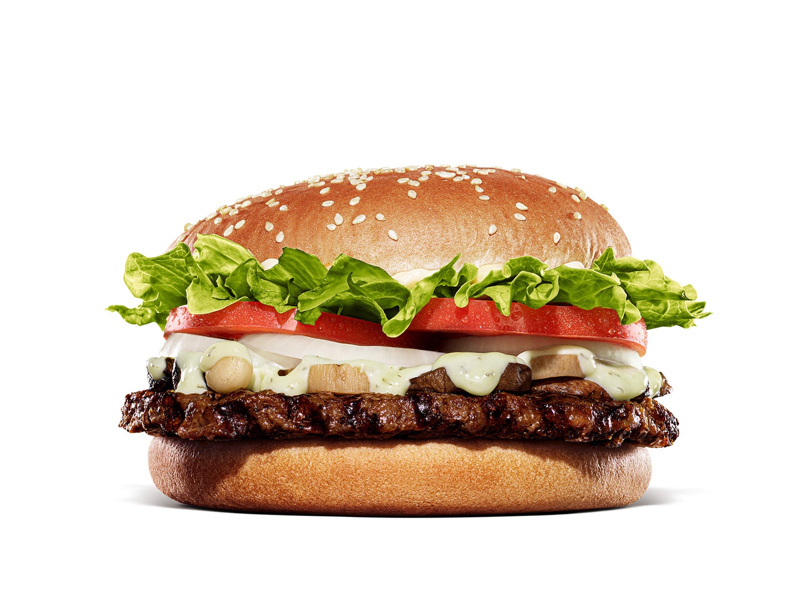 バーガーキング(R)売上No.1『マッシュルームワッパー(R)』に新作登場!なめらかなバターミルクとサワークリームを合わせた爽やかな特製ソースが4種きのこと相性抜群『シルキーランチ マッシュルームワッパー(R)』|バーガーキング 川崎ゼロゲート店