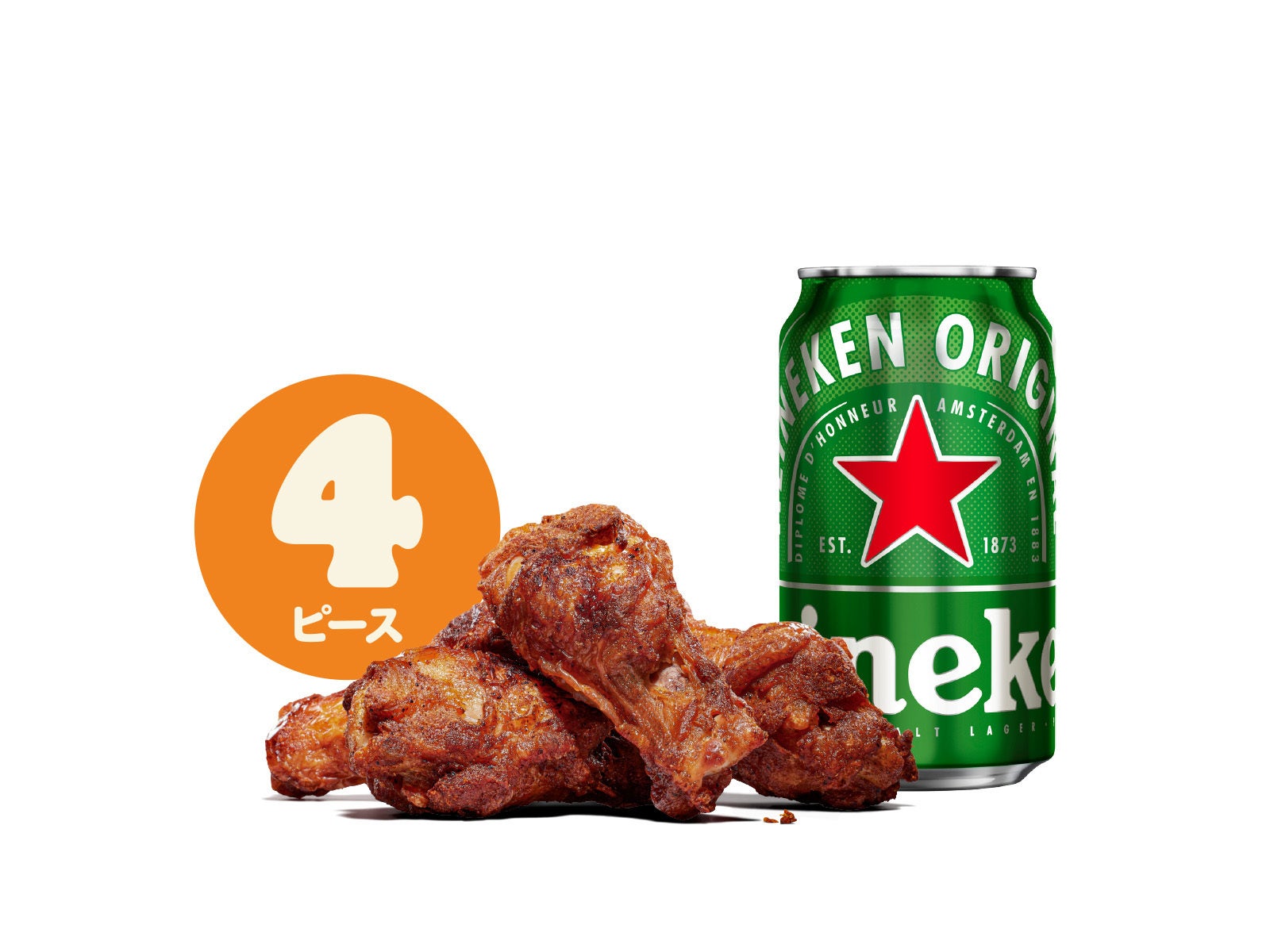 商品名 :アメリカン スモーキーチキン 4ピース+ハイネケン セット
