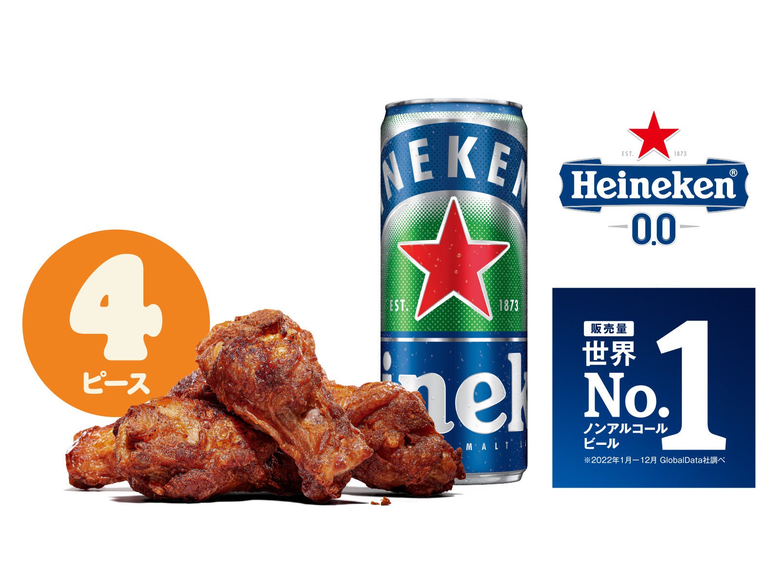 商品名 :アメリカン スモーキーチキン 4ピース+ハイネケン ゼロセット