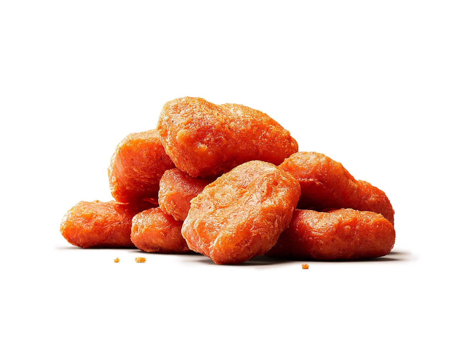 ジューシーな鶏むね肉に、バーガーキング® が独自配合したチリパウダー、ガーリック、ペッパー、オニオン、パプリカ、ターメリックの6種類のスパイスを使用した、あとひく辛さがクセになる、直火焼きビーフの本格バーガーと相性抜群のチキンナゲットです。