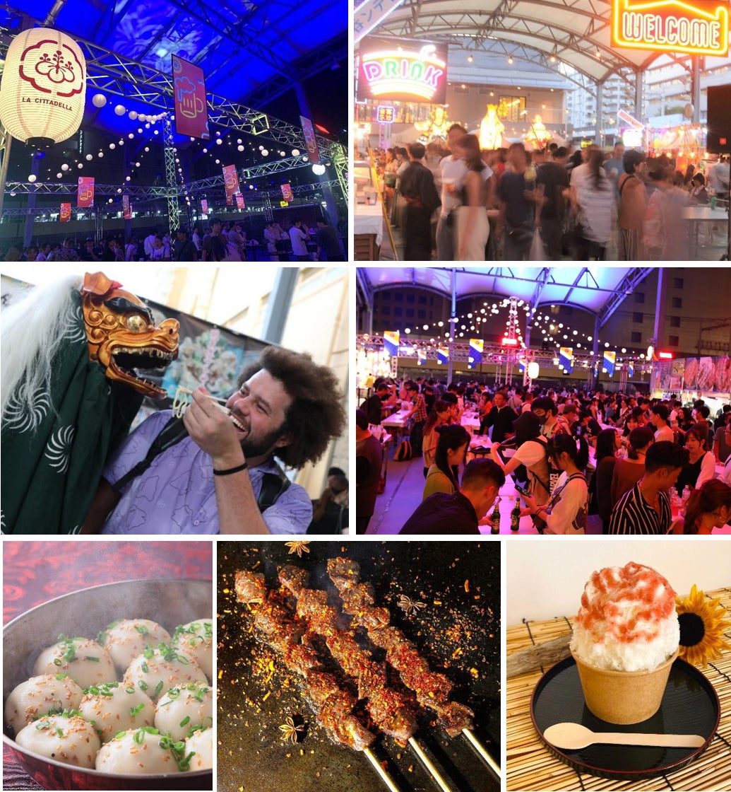 世界中の観光地で人気のナイトマーケットと、日本の夏祭りの屋台グルメや遊戯を融合させた『CITTA’の夏祭り』オリジナルの『夜市 (YOICHI)』 は、約70店の屋台がずらりと並び、世界各国の人気メニュー約100種類や日本の屋台の定番メニュー、射的や型抜きなどの遊戯もお楽しみいただけます。アジアのナイトスポットを彷彿とさせるポップな ネオン装飾の下、活気に満ちあふれた会場は、まるで異国にいるかのような幻想的な雰囲気を体験いただけます。