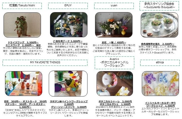 季節の花や観葉植物の販売、多肉植物寄せ植えワークショップ、リース作り、サボテン鉢ペイント、薬膳茶の飲み比べなど、植物の多彩な魅力を存分に楽しめるマルシェイベントを1日限定で開催。都内の人気ショップも出店。