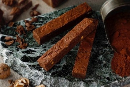 厳選した2種類のクーベルチュールチョコレートを生地に練り込み、力強いカカオの風味が感じられる生地に仕上げました。
