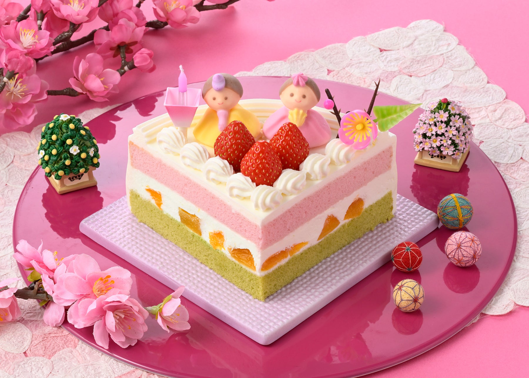 お子さまの健やかな成長を祝い、願う「ひなまつり」。ひな人形、桃の花に加えて、ひなまつりケーキはいかがですか。