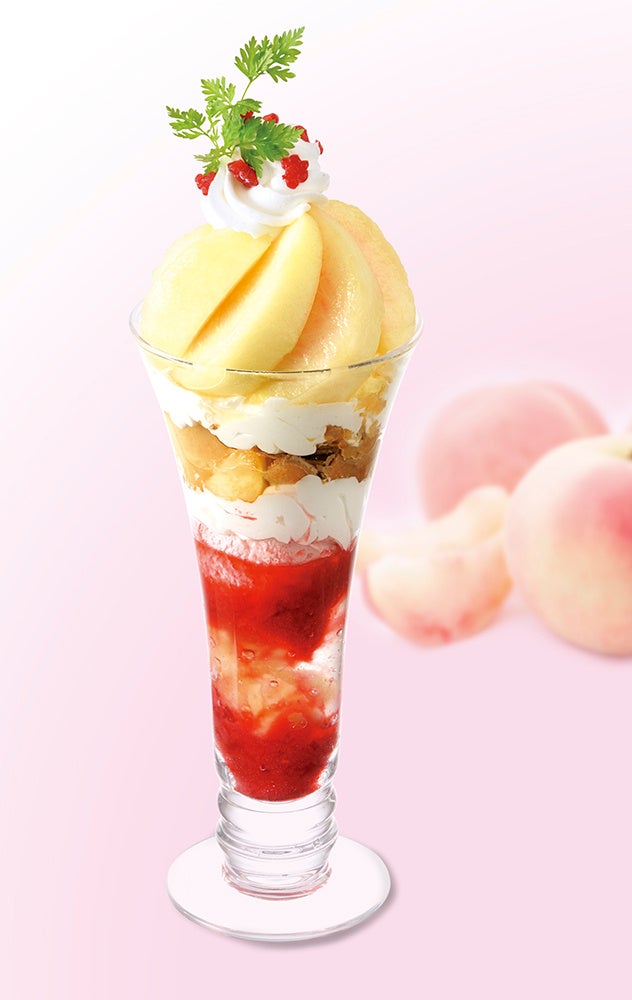 旬のフルーツを使ったデザートをお届けしている「旬のフルーツ直行便」シリーズに、山梨県産の上質な桃を使ったパフェと、かき氷が今年も登場します。