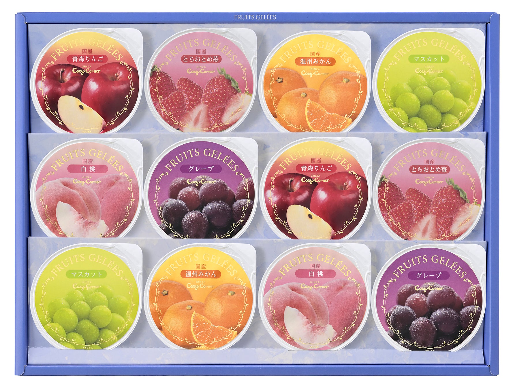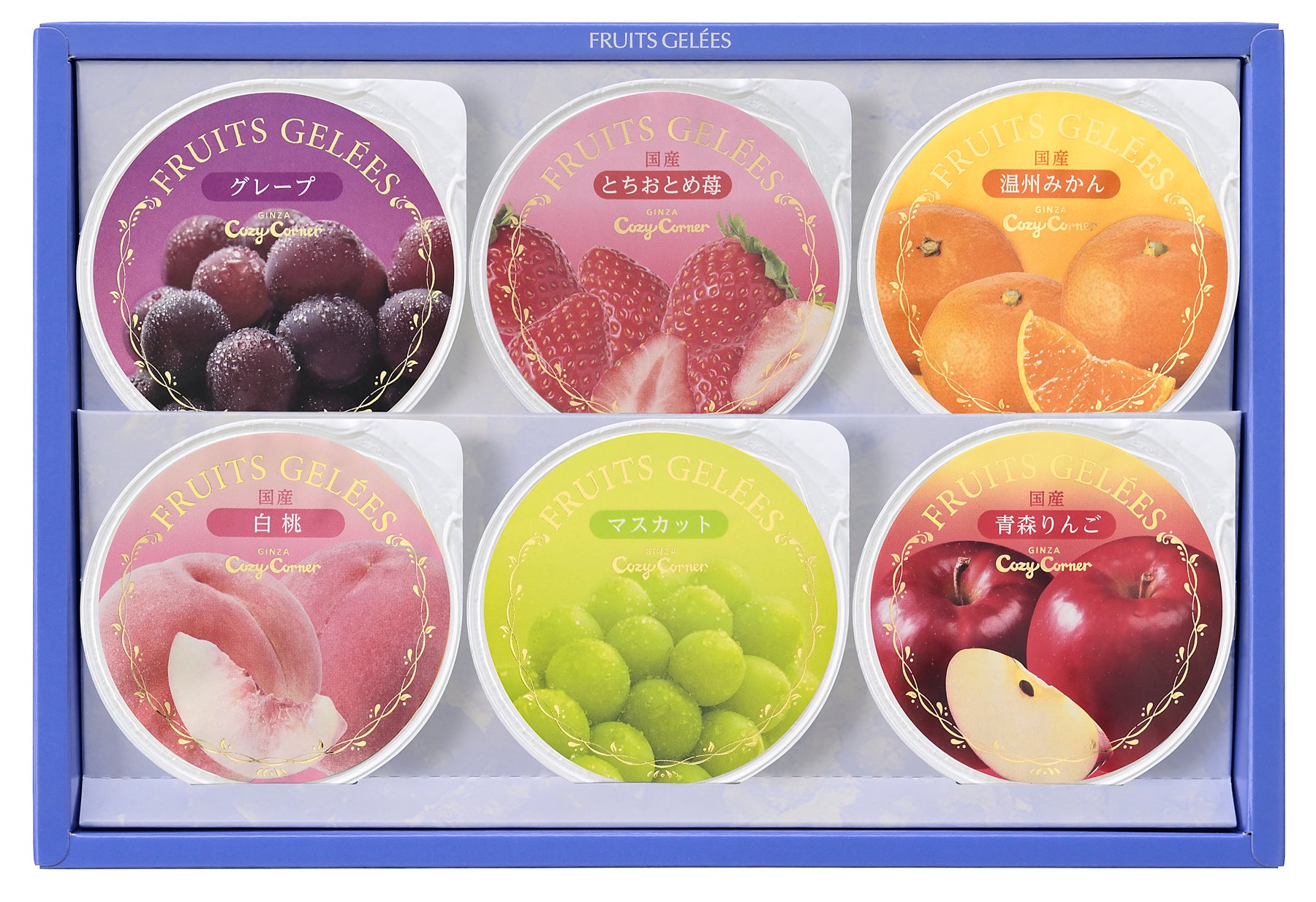 フリュイジュレ(白桃、マスカット、青森りんご、グレープ、とちおとめ苺、温州みかん)各2個