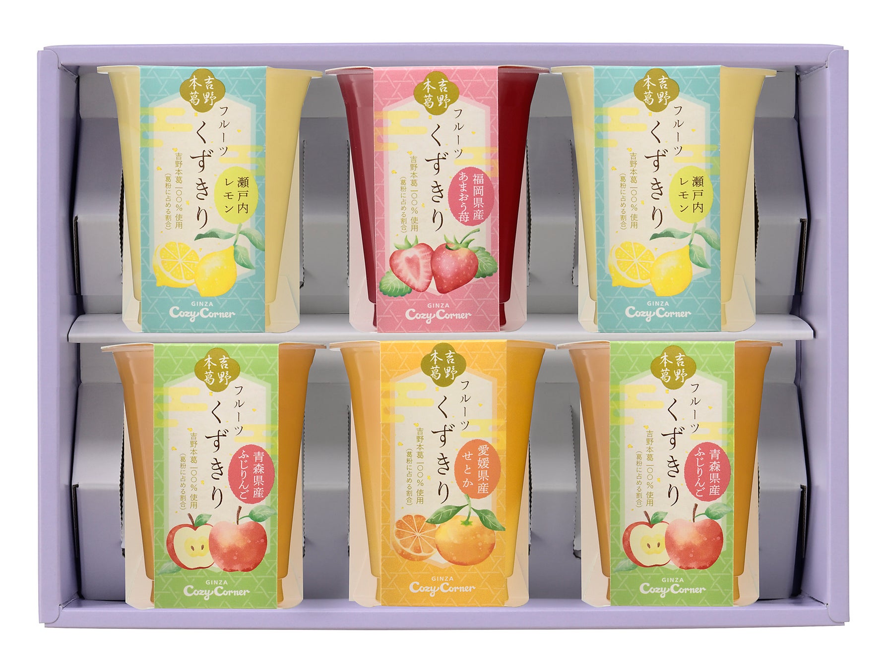 みずみずしい果実の味わいを楽しめるゼリーやくずきり、焼菓子のバラエティ豊かなアソートです。
