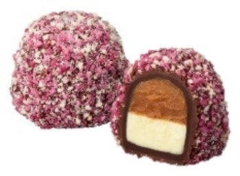 バニラムースにストロベリーガナッシュを重ね、ミルク&ダークチョコレートで包みました。サクッとしたビスケットと甘酸っぱいベリーのトッピングの華やかな見た目も季節を感じるひと粒です。