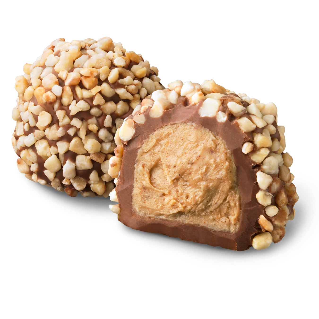 サクサクとしたはちみつがほのかに香るアーモンドプラリネをミルクチョコレートで包み、キャラメルがけしたアーモンドを乗せました。