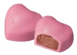 ベビーピンクのハート形のホワイトチョコレートに、甘酸っぱいラズベリーガナッシュを入れました。