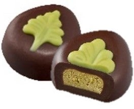 ピスタチオの独特なコクと、ナッツの歯応えを感じる濃厚なピスタチオクリームフィリングをダークチョコレートで包み、葉っぱをイメージしたグリーンのデコレーションで飾りました。