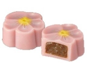 甘酸っぱいストロベリーガナッシュが、さくら色のお花形のホワイトチョコレートに閉じ込めました。