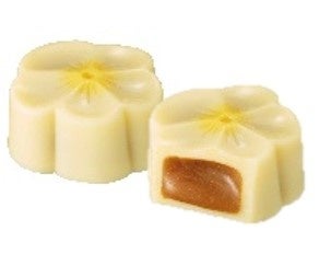 キャラメルガナッシュをお花形のホワイトチョコレートに閉じ込めました。