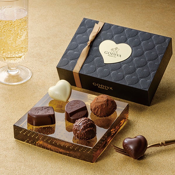ホワイトチョコレートでコーティングされた真っ白なハート形のチョコレートをワンポイントに、ベルギーの伝統が息づくゴディバの代表的なダークチョコレートを詰め合わせ、ミニマルでプレミアムなアソートメントに仕上げました。