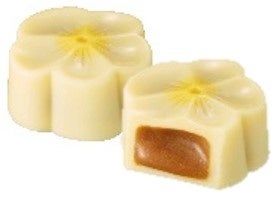 キャラメルガナッシュをお花形のホワイトチョコレートに閉じ込めました。