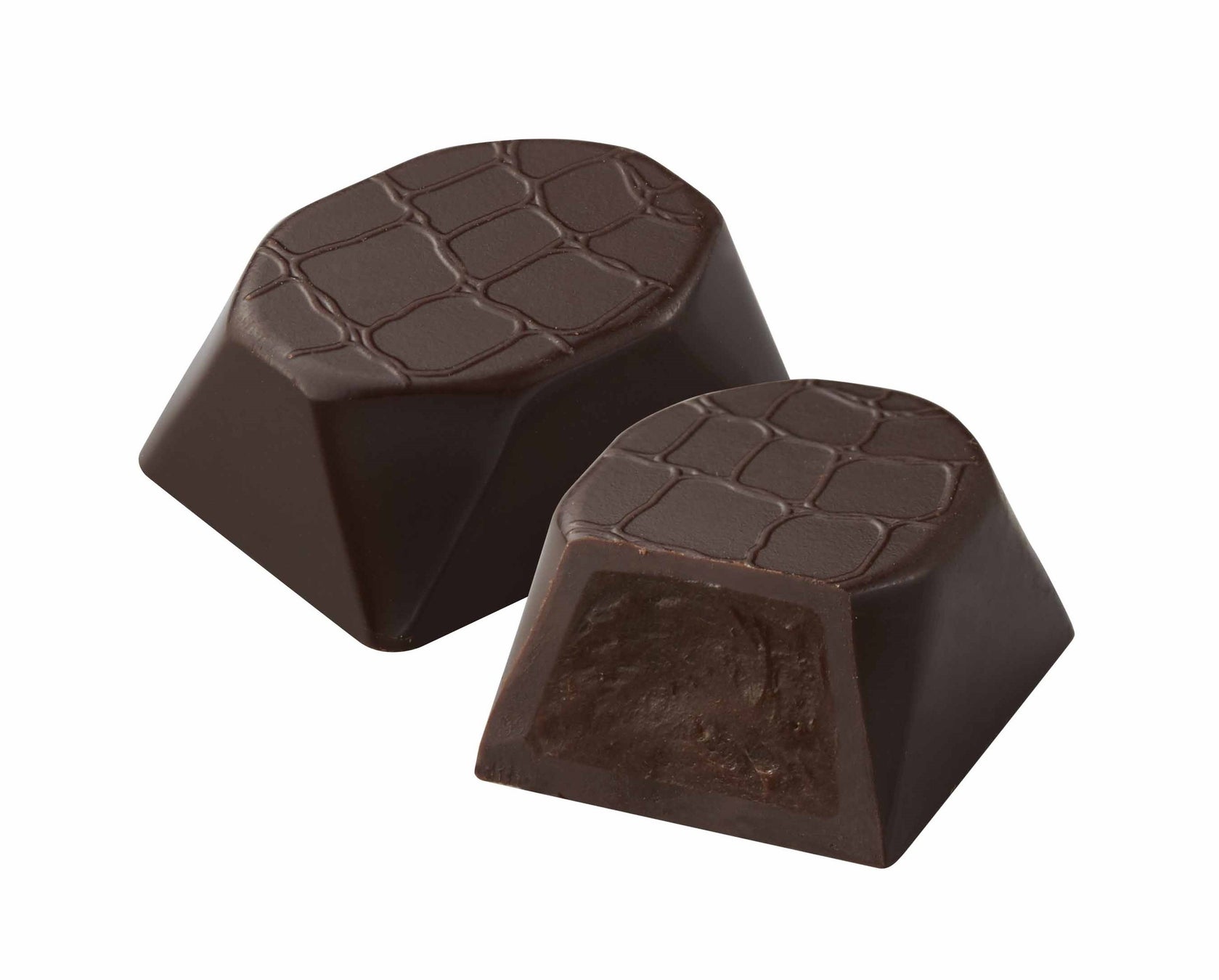 ダークチョコレートガナッシュを、ダークチョコレートでコーティングし、印象的なクロコ柄のデザインを施しました。
