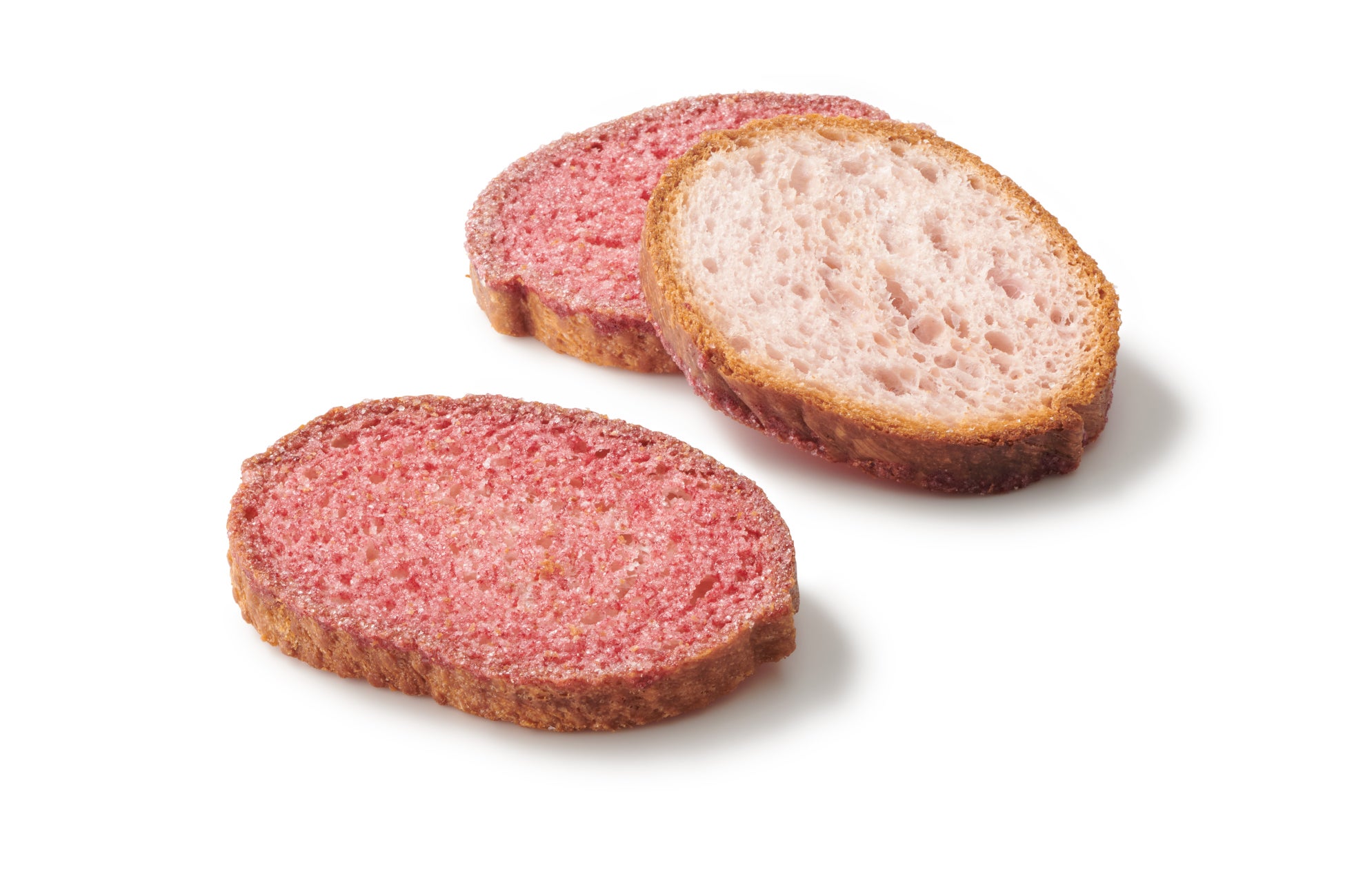 ラズベリー風味の生地の表面に、ラズベリーパウダーとラズベリーピューレを加えたバターを塗りこみました。甘酸っぱく、さっぱりとした味わいをお楽しみいただけます。