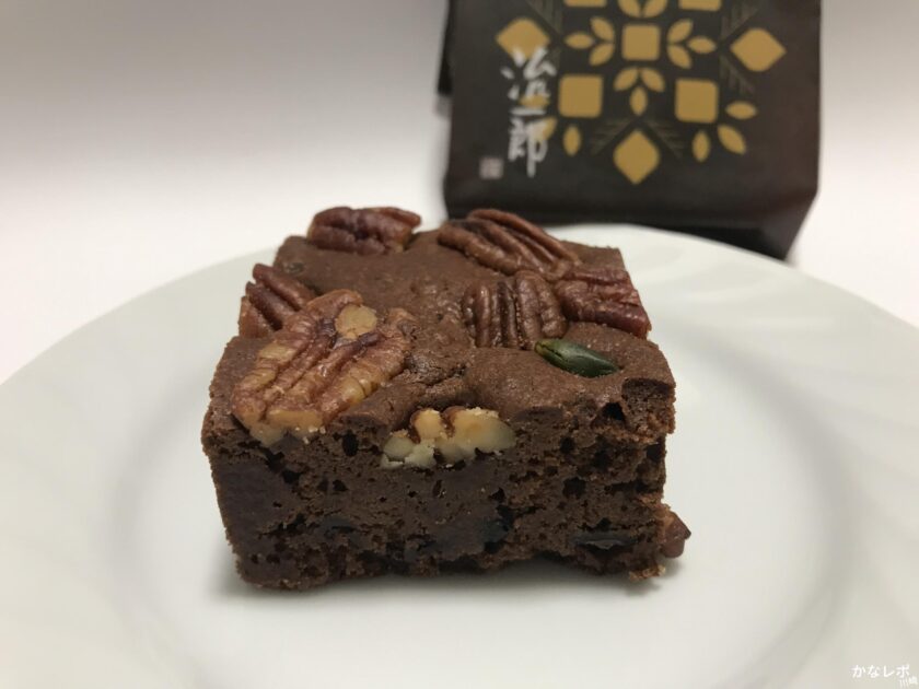 ブラウニーの生地はしっとりしていてずっしりと重みがあり、1個でも十分満足できるものになっています。