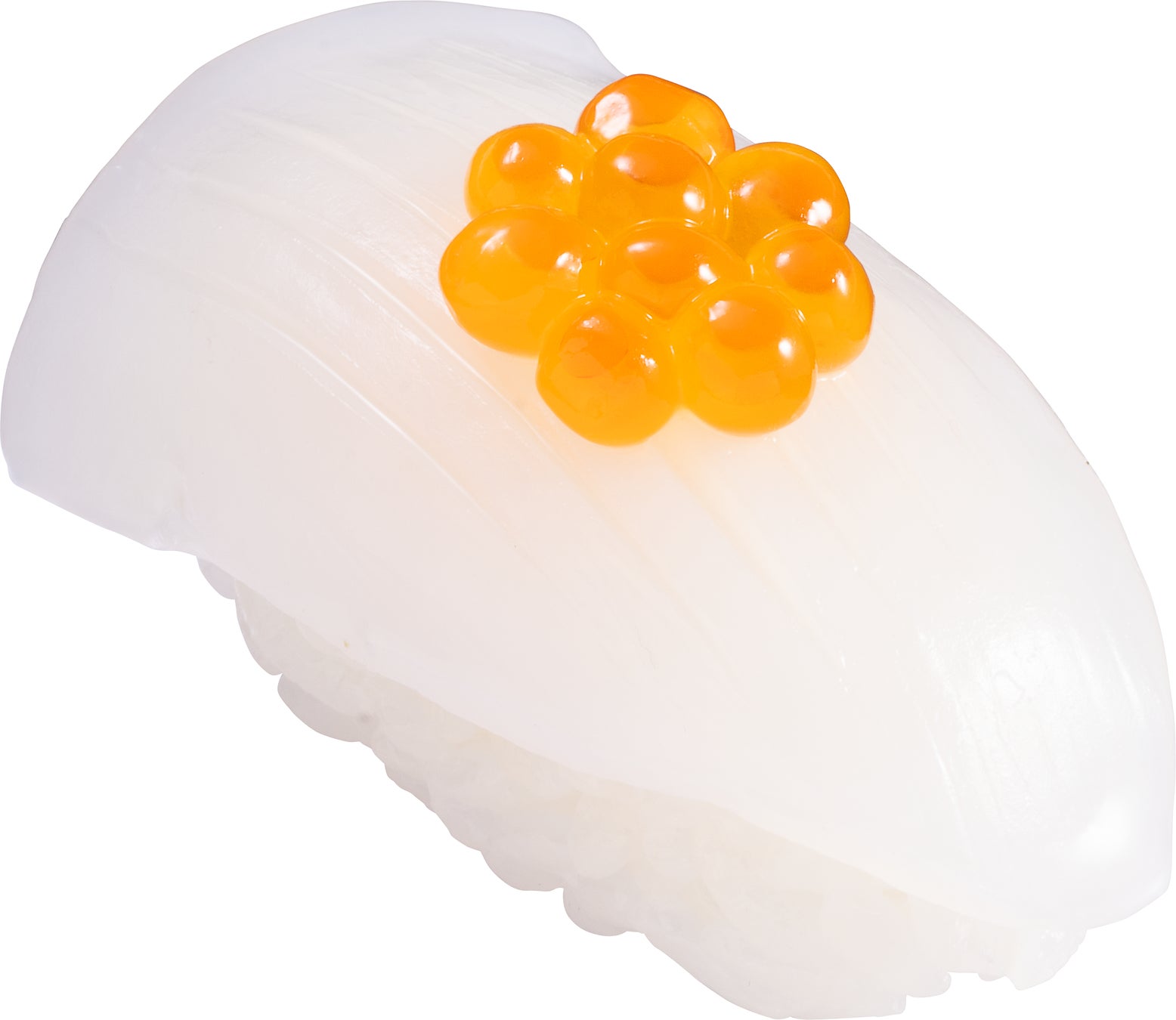 甲いかのもっちりした食感、甘みと「いくら」の旨みが味わえるにぎりです。