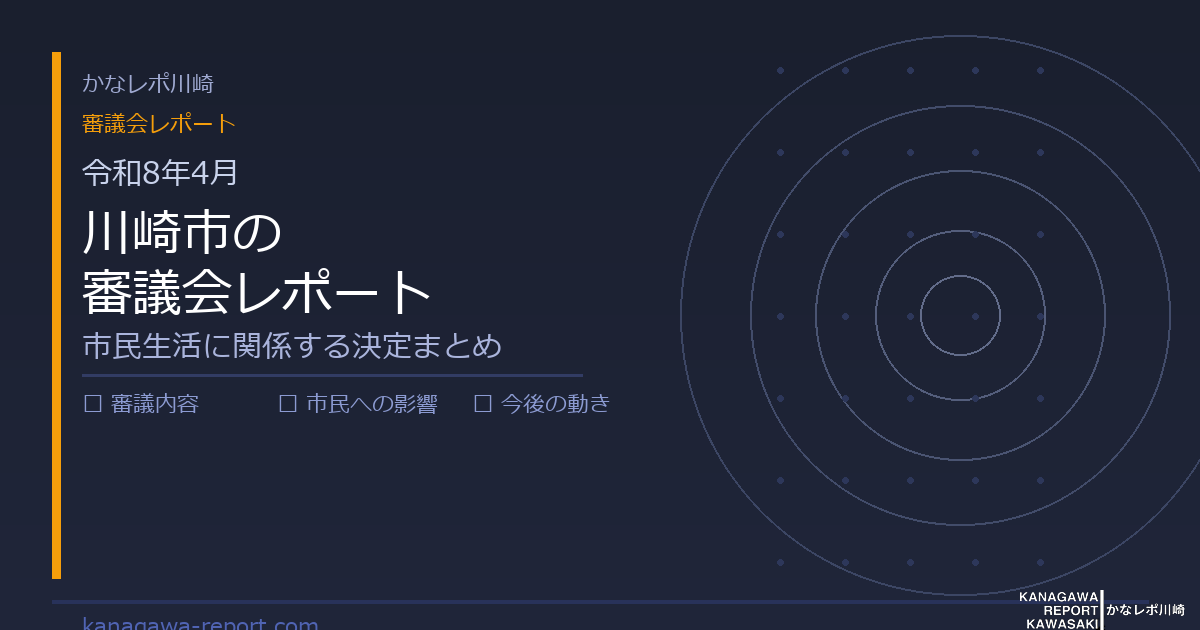 川崎市の審議会・委員会で話し合われた内容から、市民生活に関係するトピックをかなレポ川崎がまとめました(令和8年4月更新)。
