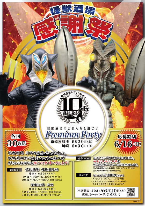 侵略目指して10周年!ウルトラ怪獣たちが主役の居酒屋『怪獣酒場』にてオープン10周年を記念した“怪獣酒場感謝祭“を開催中!感謝祭限定メニューの登場や、怪獣たちとのプレミアムパーティーを開催