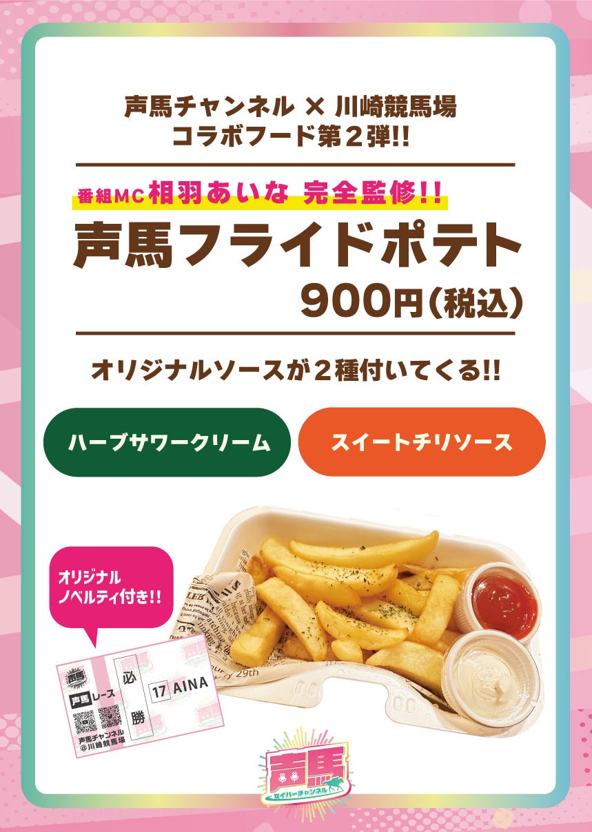 番組コラボ商品の「声馬ビール」、「声馬フライドポテト」は、好評発売中です。川崎競馬場本場開催中はT.T BREWERY 川崎競馬場2号スタンド店にていつでもご購入いただけます。