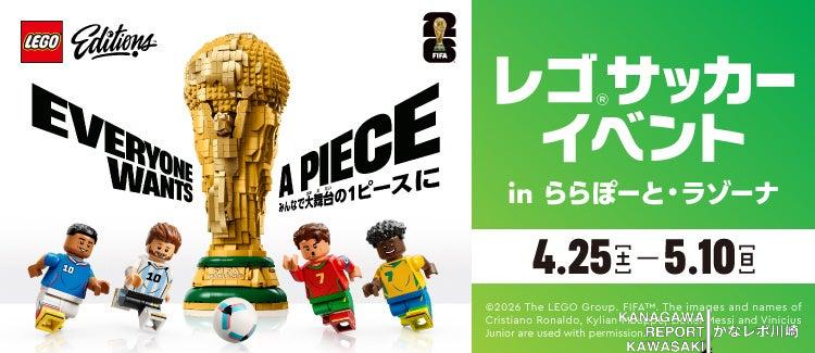 2026年4月25日(土)から5月10日(日)まで、ラゾーナ川崎プラザをはじめとする三井ショッピングパークららぽーと全国20施設で「レゴ®サッカーイベント in ららぽーと・ラゾーナ~みんなで大舞台の1ピースに~」が開催されます。
