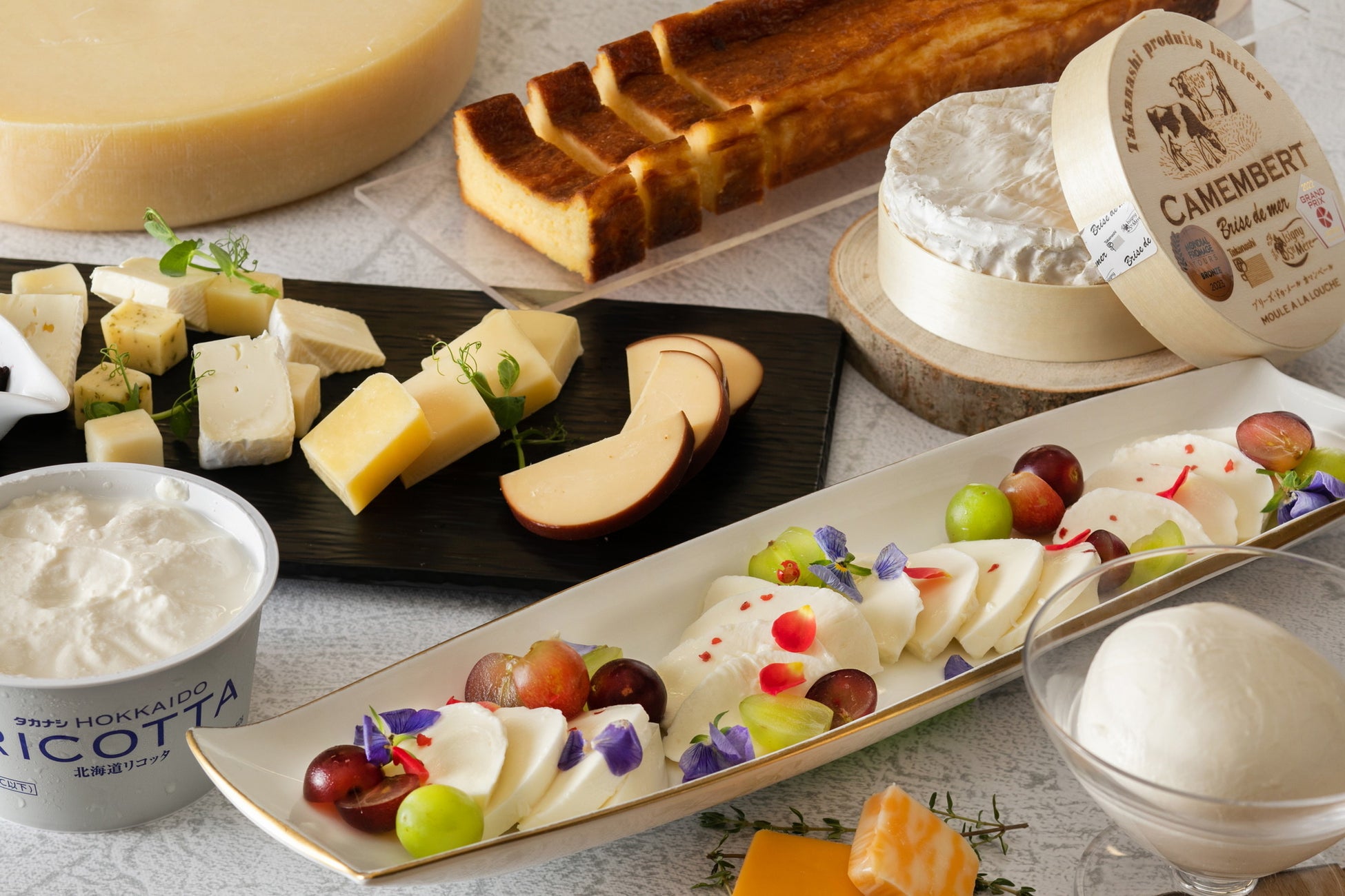 各種カットチーズ/スカモルツァ燻製チーズのリゾット/リコッタチーズのタルト