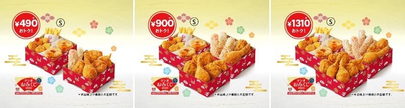 ※お重は紙製です。※お重1セットにつき1枚、抽選で人気商品の無料券があたる「クーポンつきケンタおみくじ」が付いています。※「バーガー無料券」でお選びいただけるのは、チキンフィレバーガー/和風チキンカツバーガーの2種のみとなります。※「クーポンつきケンタおみくじ」の有効期限は2025年3月31日(月)です。※一部店舗ではご利用いただけません。