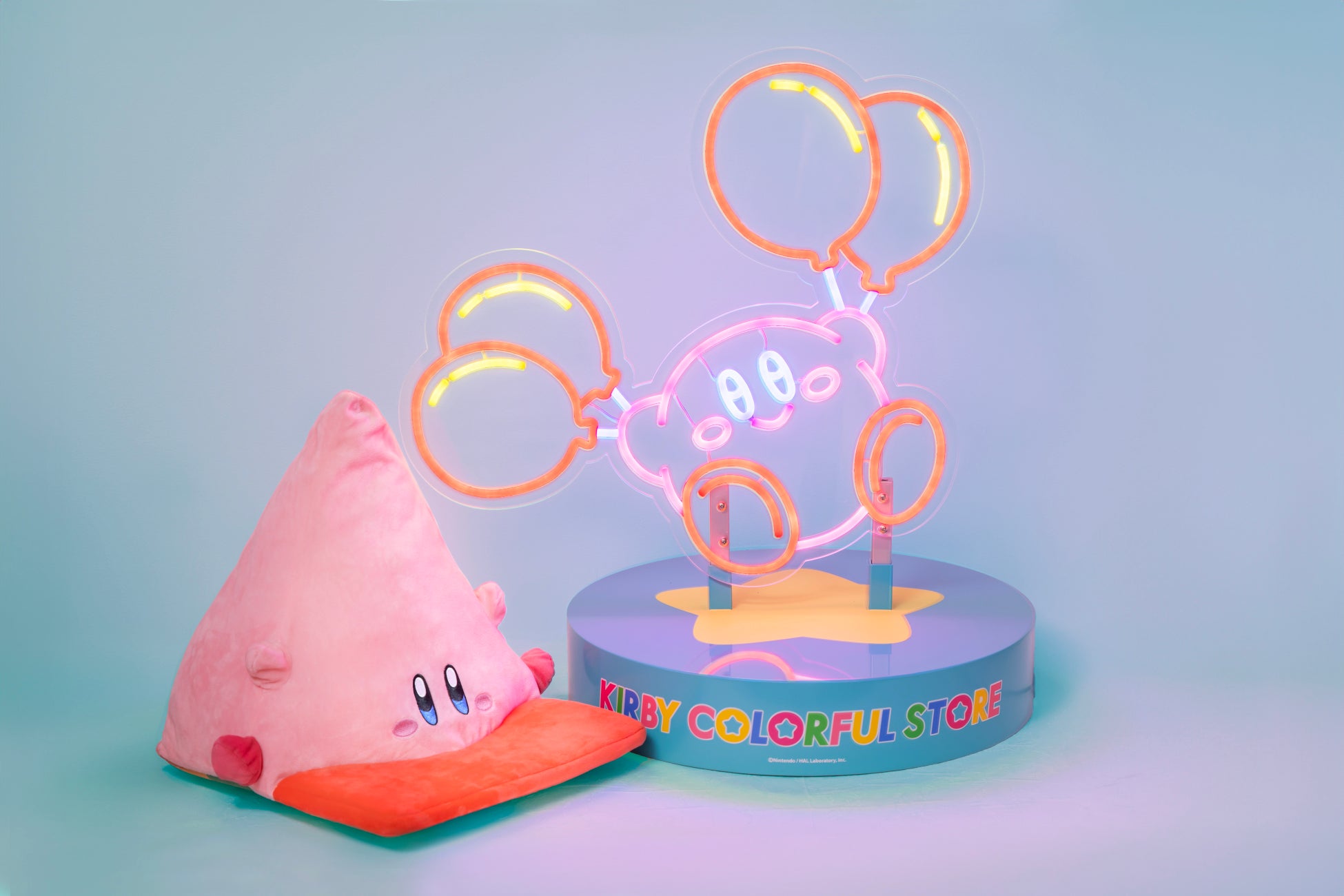 「KIRBY COLORFUL STORE」限定の展示として、店頭でお出迎えしているカービィとワドルディに加え、カービィのネオンサインも登場します。