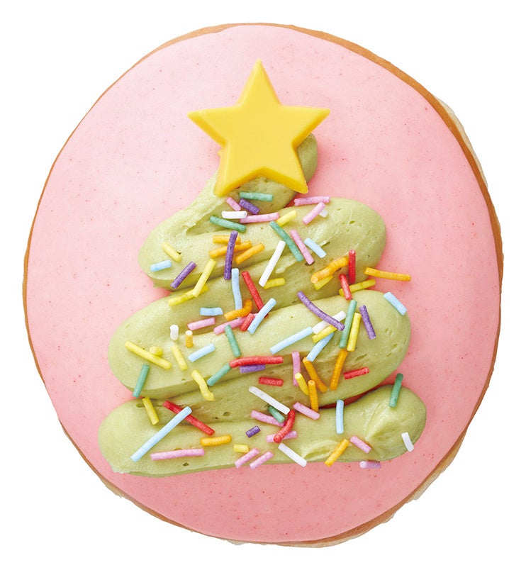 『ピスタチオ クリーム ツリー』は、甘酸っぱいストロベリーのチョコでコーティングした生地に、香ばしさを感じるピスタチオクリームでクリスマスツリーを描きました。カラフルに彩るレインボースプリンクルのトッピングに黄色い星を飾ったツリーが、ホリデーシーズンにきらめきを与えてくれます。