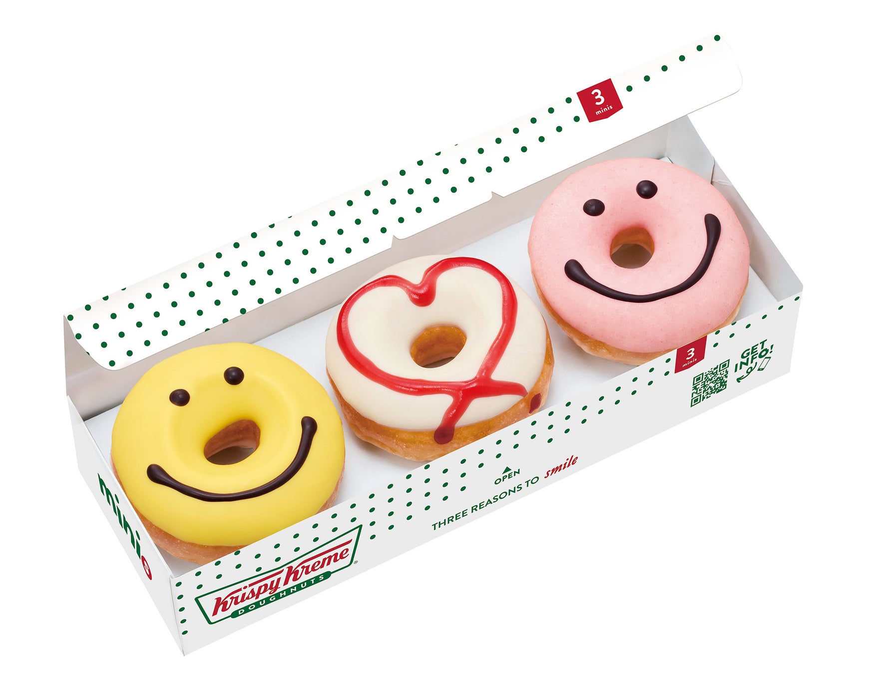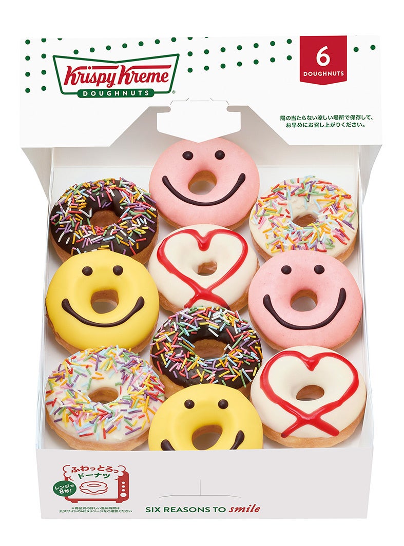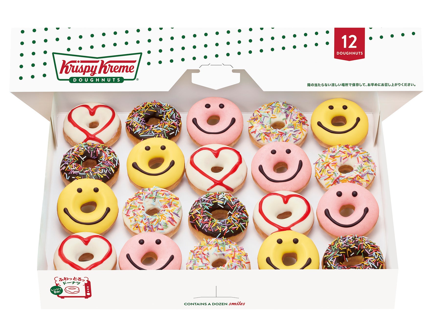 『ミニ スマイル プリン』は、キュートなスマイルを描いた『ミニ ドーナツ』の定番商品です。ミニオリジナル・グレーズド®にプリン風味のコーティングをし、優しい味わいに仕上げました。