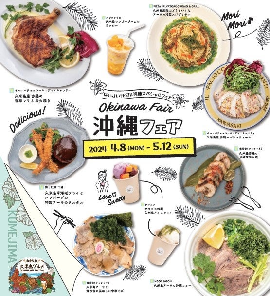 本フェアは2004年より毎年恒例となっている首都圏最大級の毎年20万人以上を動員する沖縄がテーマのイベント「はいさいFESTA」との連動企画となっており、イベント開催日である5月3日(金・祝)~6日(月・祝)の前後、35日間にわたって実施いたします。大自然の離島・久米島の豊かな恵みをぜひこの機会にお楽しみください。