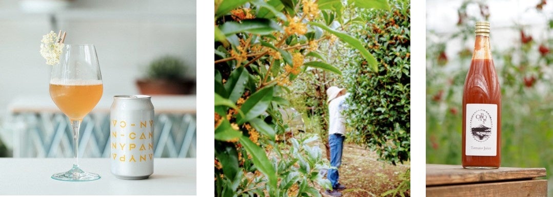 千葉県大多喜町にある薬草園蒸溜所「mitosaya」が手がける、ノンアルコール飲料のボトリング工場「CAN-PANY」と、眞名子新によるコラボレーションドリンクをご用意いたしました。このほか、最高糖度13度のカピオトマトジュースやクラフトコーラ等、お酒が苦手な方も楽しめるノンアルコールドリンクもございます。