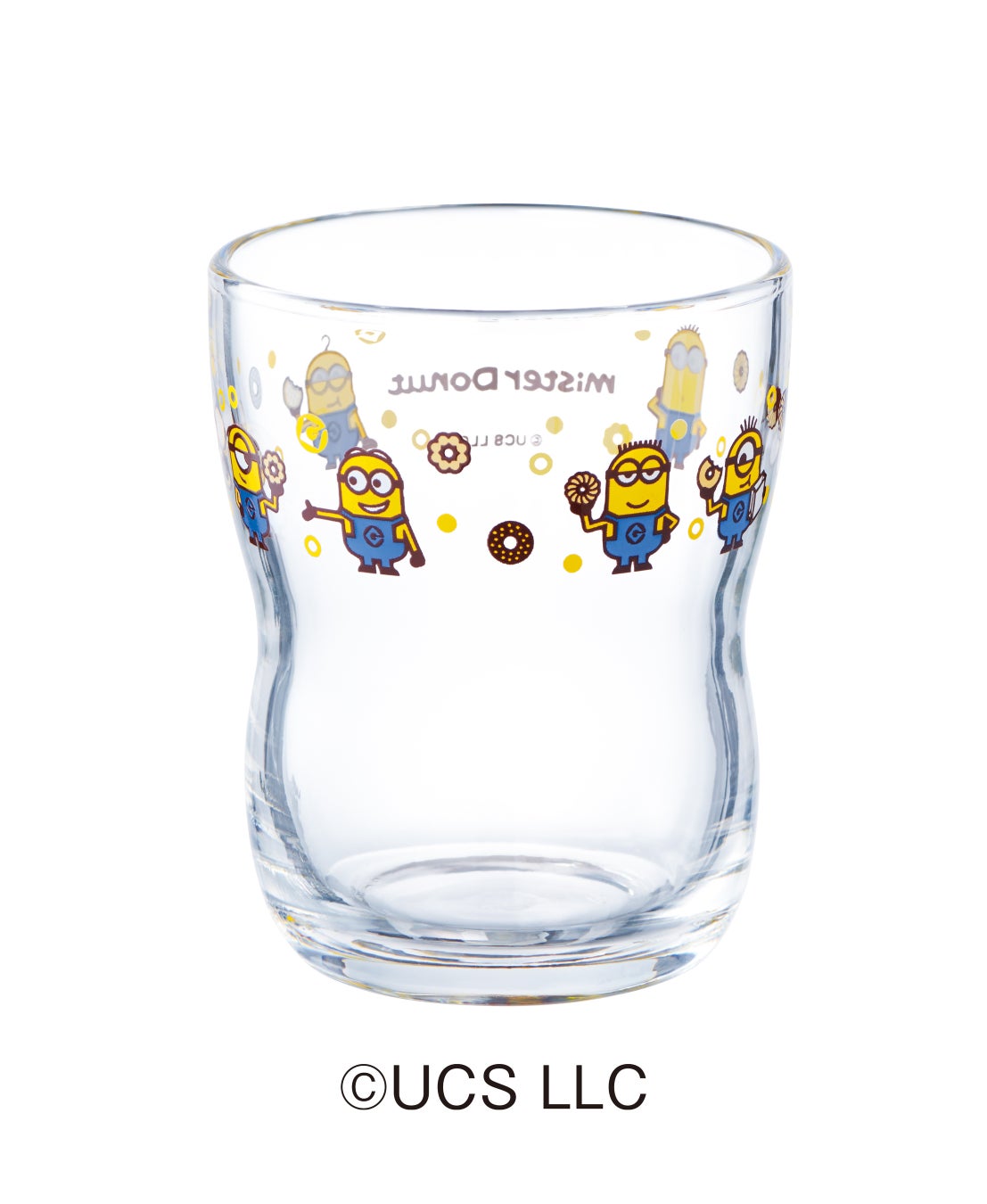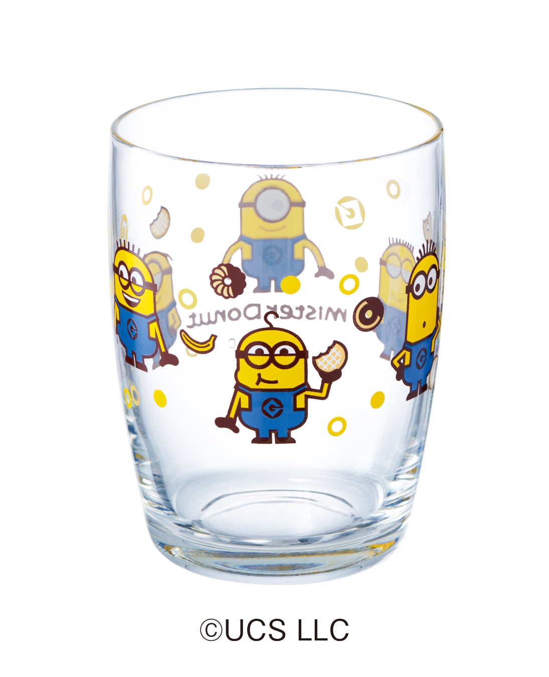 ミニオンが人気ドーナツを持ったミスタードーナツのオリジナルデザインを施し、今回のコラボレーションならではのデザインが完成しました。小さい頃から本物のガラスに触れてほしいという「食育」の観点から開発された、くびれがあって持ちやすい形のお子様用の「“ミニオン” つよいこグラス」と、今回は大人の方も楽しめる「“ミニオン” グラス」をご用意しました。