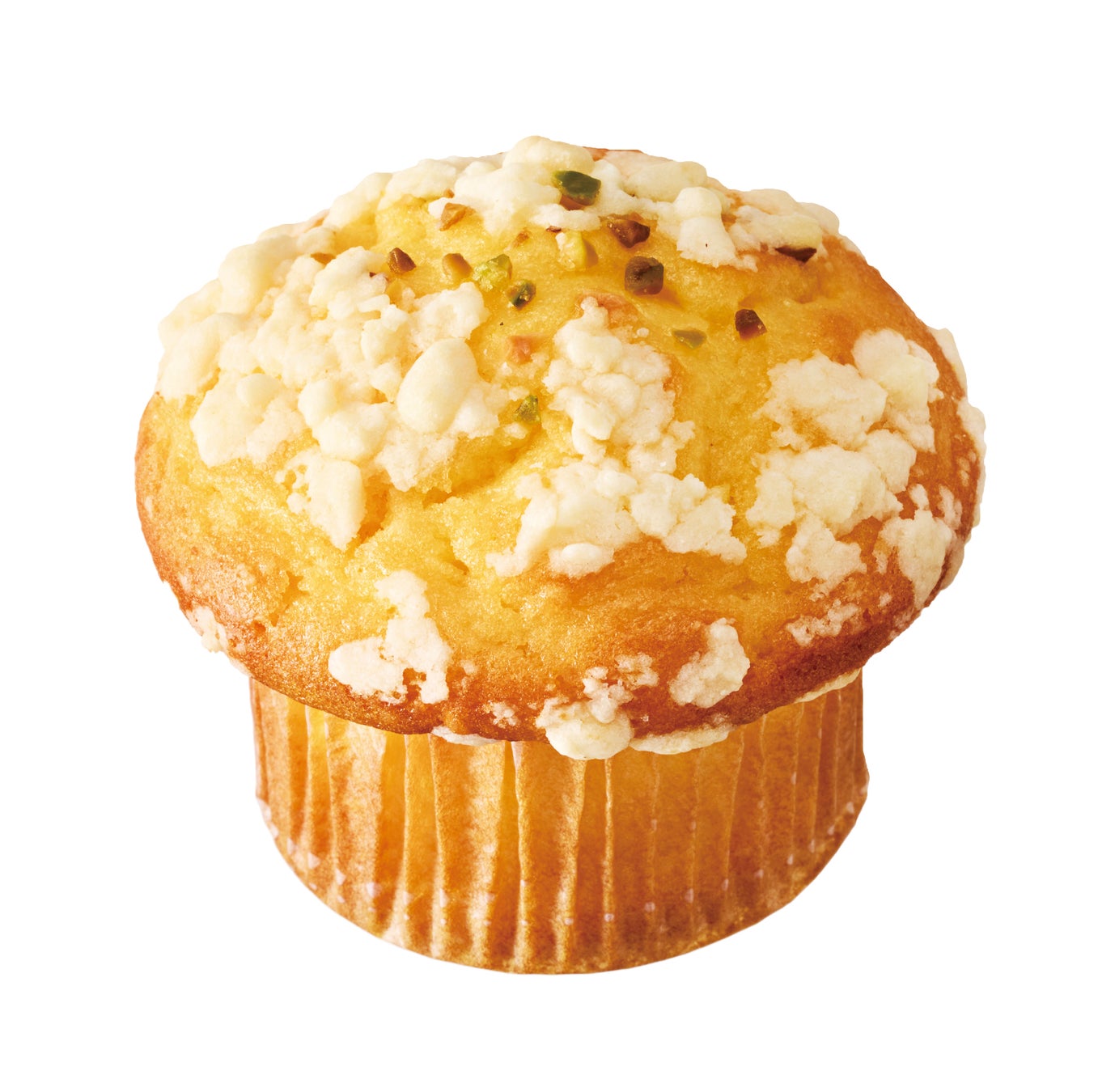 ほろほろ食感のクランブルをトッピングした、しっとり食感のマフィン。バター風味クリーム入り。