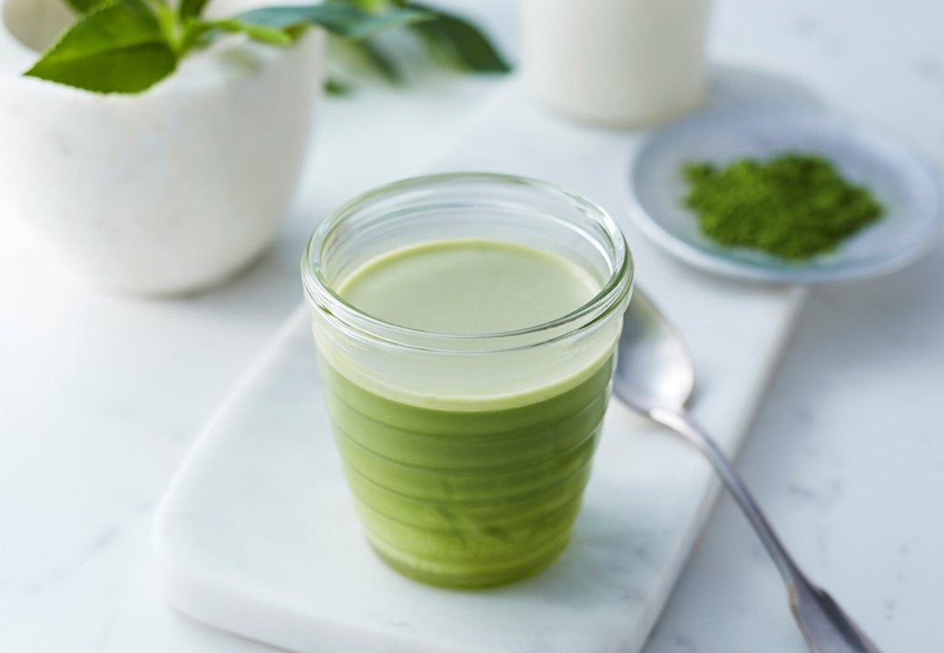彷彿とさせる、新緑の春に楽しむ、鮮やかな抹茶プリンです。