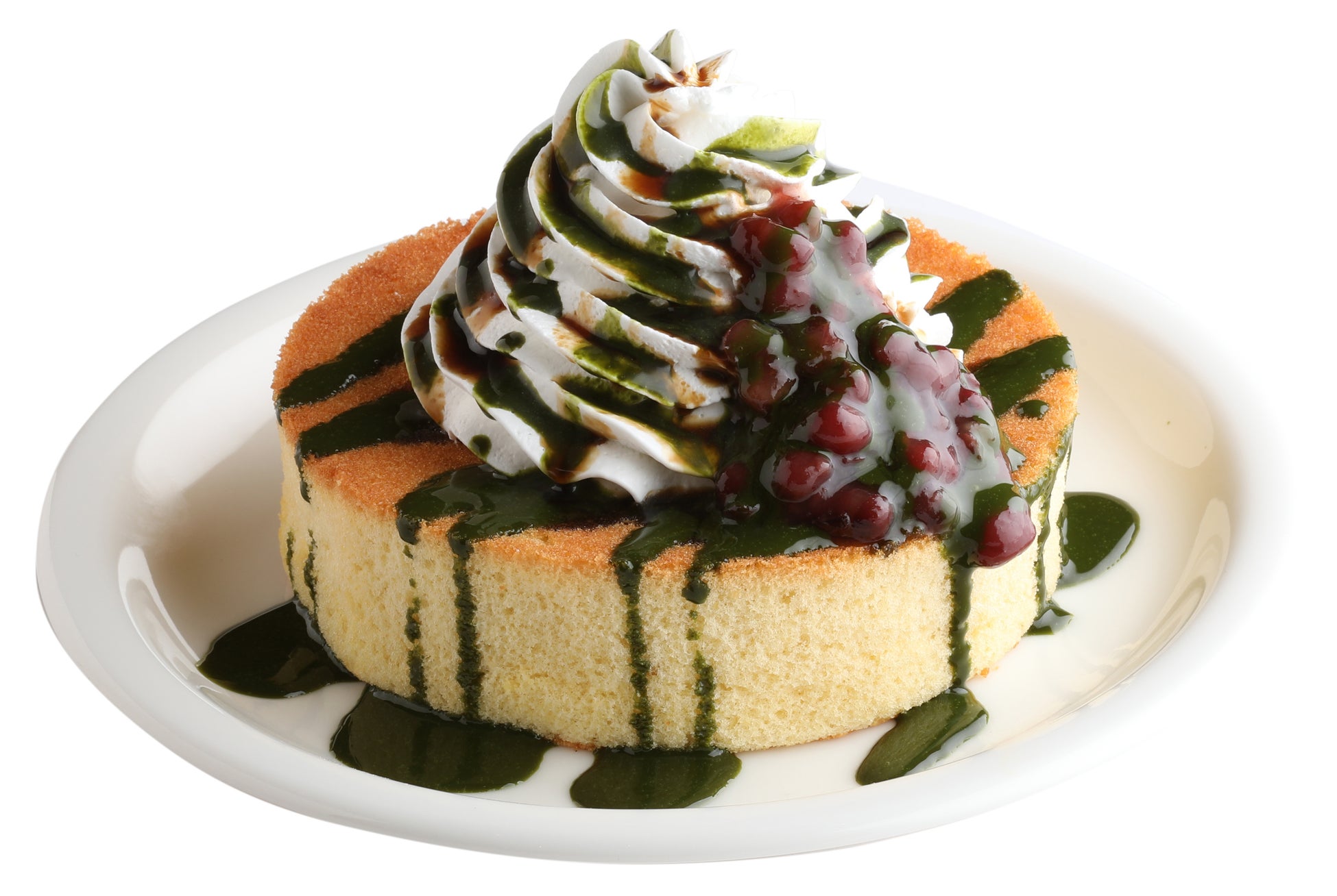 しっとり、ふんわり食感のスフレパンケーキに、北海道産バターとホイップクリームをのせ、宇治抹茶ソースと黒蜜、ほくほく食感が特徴の北海道産ゆであずきをトッピングしました。抹茶ソースには石臼挽きの香り豊かな宇治抹茶を使用しており、沖縄県産の黒糖を使った黒蜜でコクのある甘さをプラスしています。また、スフレパンケーキはふんわりとした口当たりをお楽しみいただけるよう焼き方にこだわりました。有塩バターの塩味とケーキの甘さがよくマッチする逸品です。