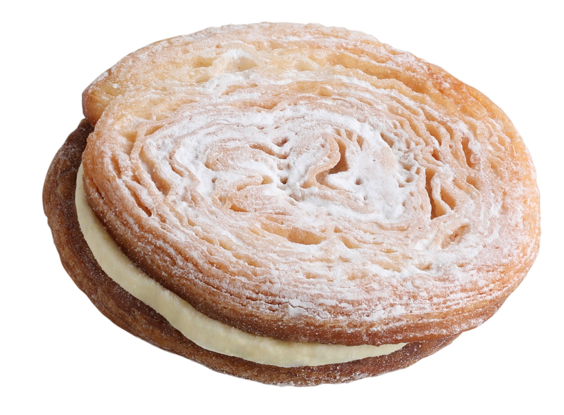 フランスの伝統菓子「クイニーアマン」を冷凍菓子にアレンジした、片手でも楽しめるクロワッサンサンドです。カスタードホイップを挟んでおり、冷凍のまま食べることでクロワッサン生地のザクザク食感と、カスタードの甘みを堪能できます。