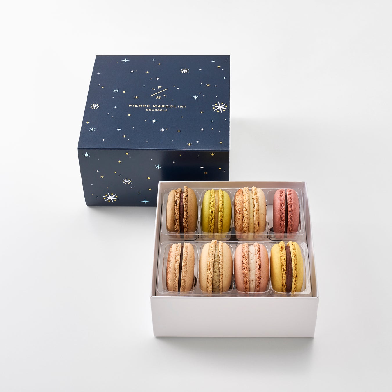 ホリデーシーズン限定パッケージに、季節限定フレーバー「ティラミス」ほか、8種類の マカロンを詰め合わせました。