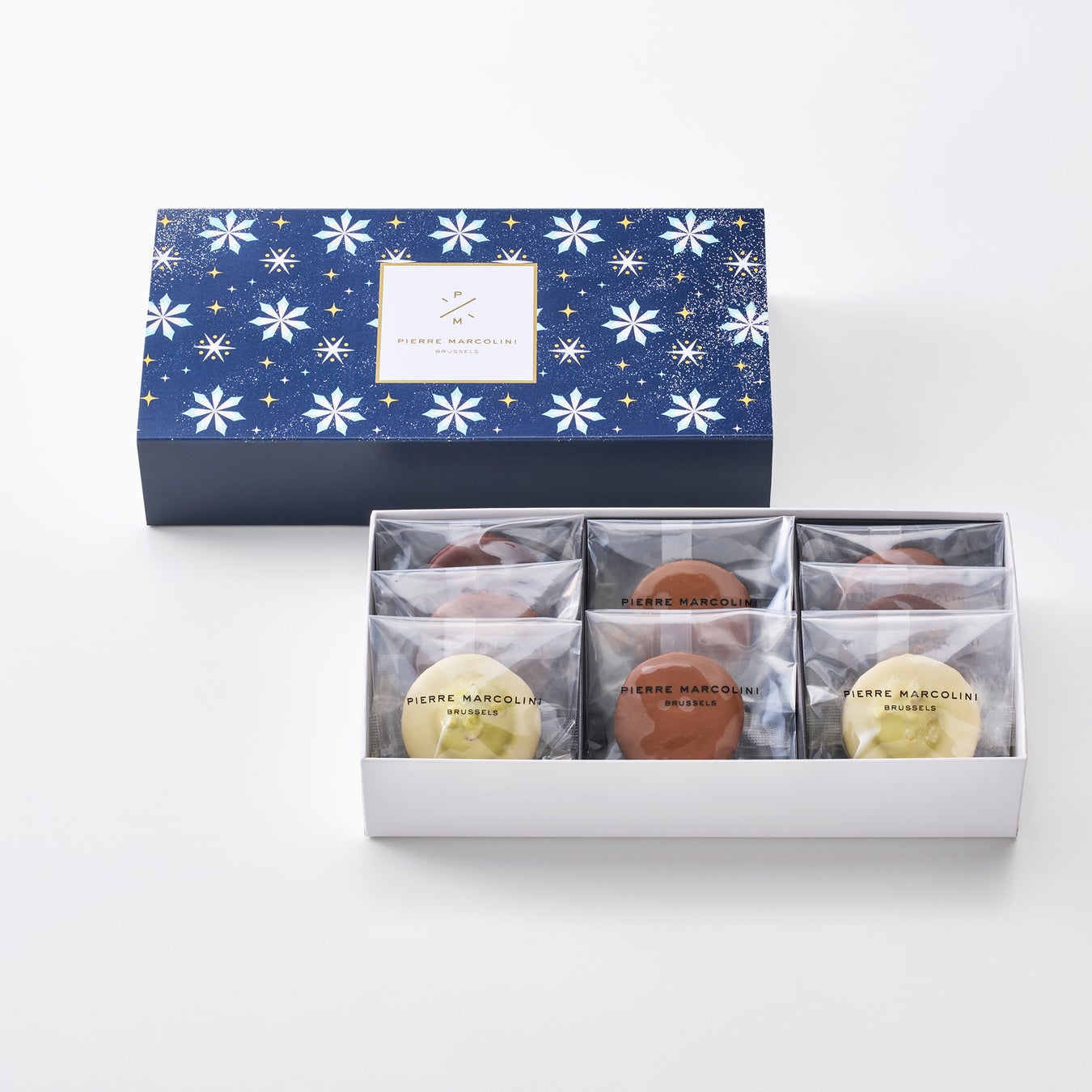 ベルギーの伝統菓子「スペキュロス」、ザクザクとしたサブレの上にプラリネとナッツをのせチョコレートでコーティングした「サブレ クロッカン」3種のホリデーシーズン限定アソートメント。