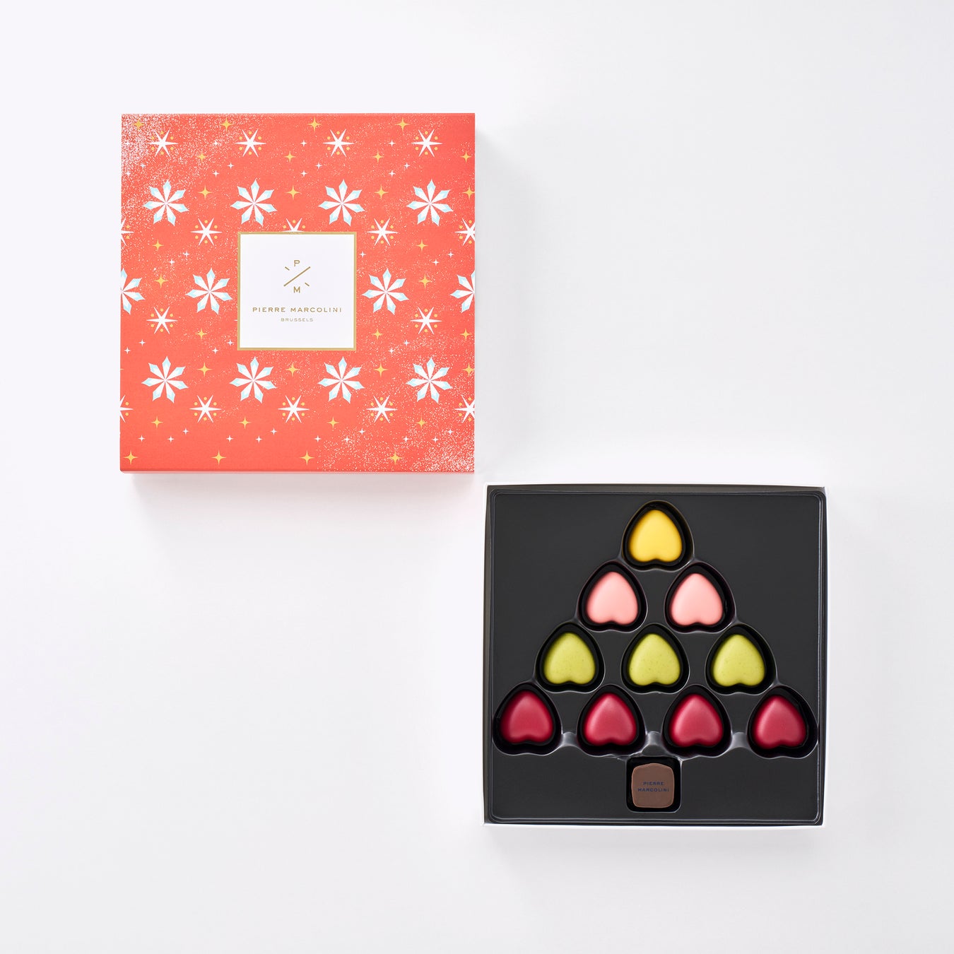 ピエール マルコリーニのアイコン「クール シリーズ」をクリスマスツリーに見立てて詰め合わせたホリデーシーズン限定のアソートメント。