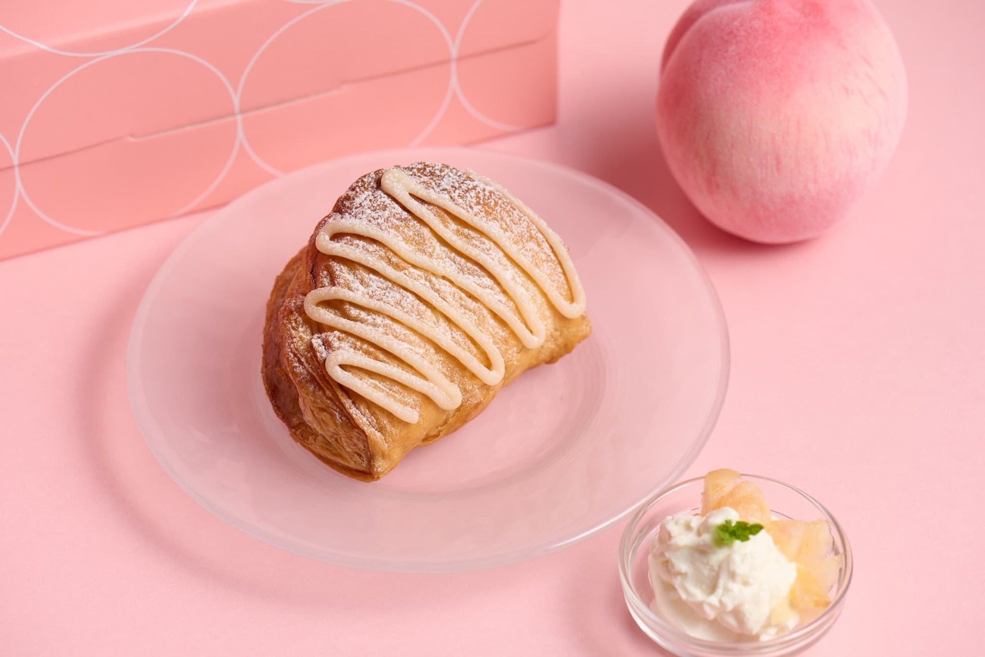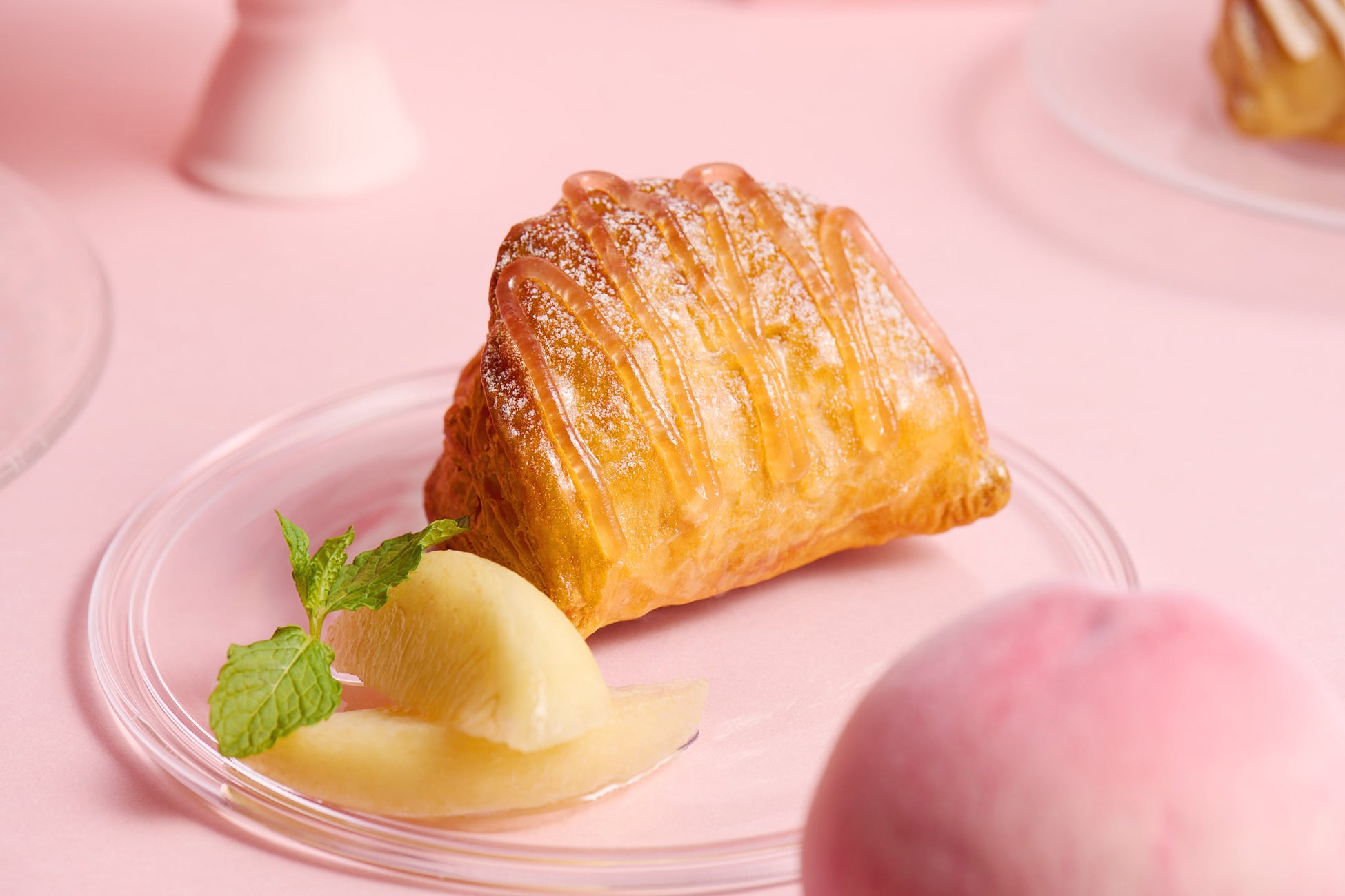 各商品は焼きたての状態はもちろんのこと、日に日に気温が上がっていくこの時期には、冷やしてお召し上がりいただくのもおすすめの食べ方です。冷やすことで、パイ生地の一枚一枚からしっかり伝わるパリパリとした歯応えや、ふわっと芳醇でフルーティーな桃の香りをお楽しみいただけます。